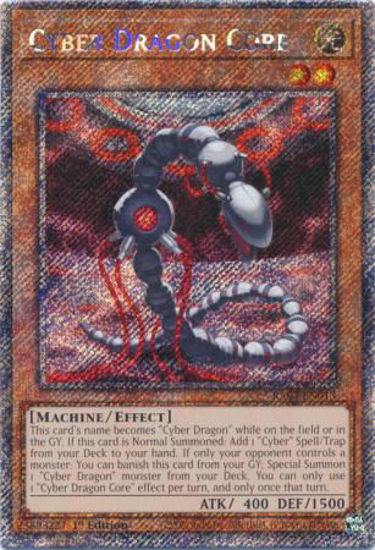 Naziv: Cyber Dragon CoreReritet: signedEdicija: 1st Edition Naziv seta: Quarter Century StampedeJezik: EngleskiStanje: Near Mint